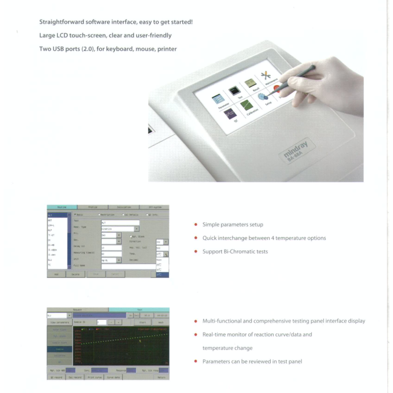 Microplate ReaderMR 96A Microplate Reader Touch-screen, 7.8″ large color LCD display Opaque lid to prevent stray light Built-in thermal recorder, optional external printer Non-volatile memory stores up to 20,000 results Multiple Curve-fitting options Variable time and speed shaking modes Fully automatic bi-chromatic optical system Extensive report with patient information Long life lamp with lamp saver…
